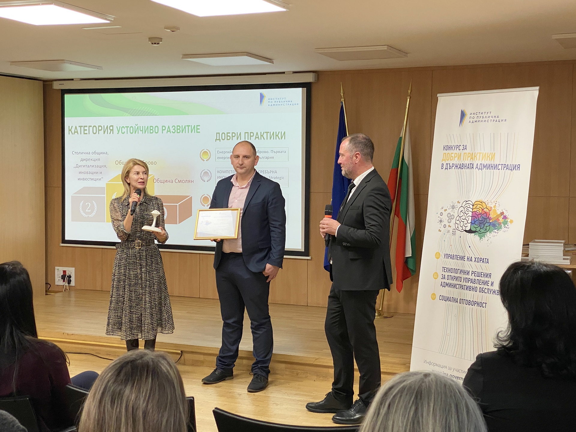 Второто място в същата категория зае Столична община с практиката „Компетентности за сребърна икономика“, а третото място бе присъдено на Община Смолян за иновативни дейности по насърчаване на компостирането. Награди бяха раздадени още в направленията „Социална отговорност“, „Управление на хора“ и „Технологични решения и административно обслужване“.