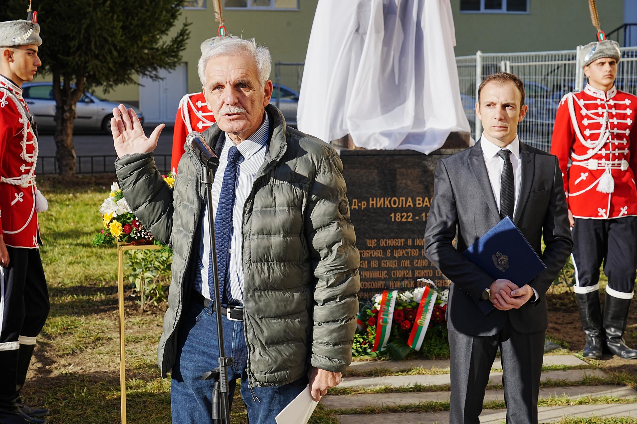 С огромна радост и гордост днес отбелязваме едни значим акт на дълг, отдаденост, родолюбие и признателност - откриването на паметника на д-р Никола Василиади – велик благодетел и визионер, чийто принос е неоценим не само за нашия град и общност, но и за страната ни. Монументът, освен завещание към новите поколения е и значим, защото носи в себе си изключителна енергия на неговите инициатори, създатели, благодетели. Той е символ на усилията, любовта и постоянството, с които Сдружение с нестопанска цел "Фонд 200 години д-р Никола Василиади" неуморно работи за да може днес да стоим тук, пред зоркия поглед на благодетеля Василиади. Без вашата неуморна работа и отдаденост, този значим проект нямаше да бъде възможен. Нека този паметник бъде вдъхновение за всички нас и бъдещите поколения, напомняйки за силата на единството и сътрудничеството.