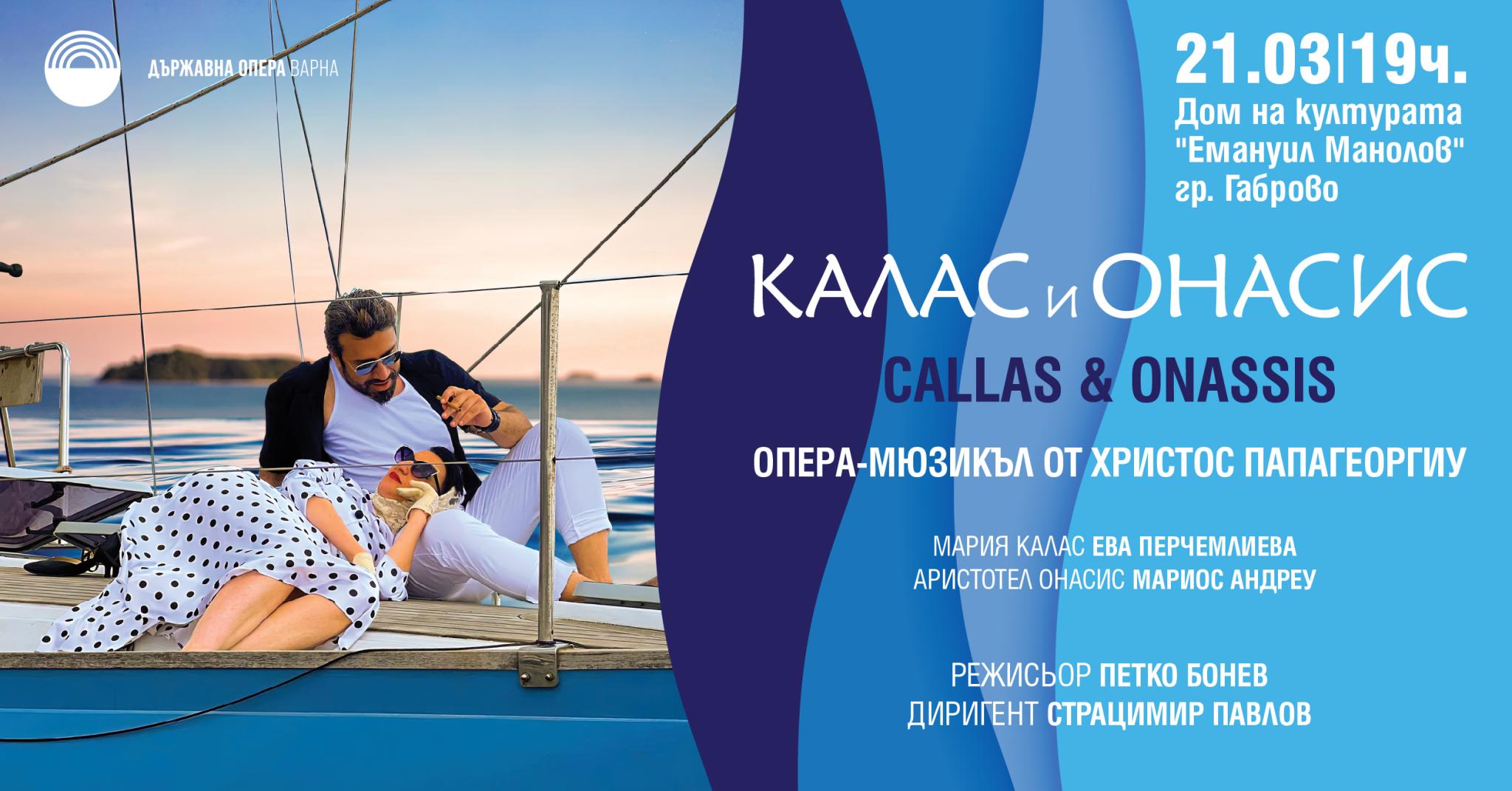 На 21 март от 19.00 ч. в Дом на културата „Емануил Манолов” „Калас и Онасис”. Операта-мюзикъл на Христос Папагеоргиу разказва с брилянтни певчески и танцови изпълнения историята на оперната дива Мария Калас и милиардера Аристотел Онасис. В ролите им изключително емоционално и с огромен талант влизат звездите Ева Перчемлиева и Мариос Андреу. За екипа на Държавна опера - Варна световната премиера на мюзикъла „Калас и Онасис“ е интересно творческо предизвикателство, най-напред заради хибридния жанр, заложен в операта-мюзикъл от Христос Папагеоргиу. Авторът, който живее и твори в Ню Йорк, развива сюжета и музиката на две нива - оперната сцена и извън нея, и този сложен паралел изисква различна интерпретация. „Певицата, която изпълнява ролята на Мария Калас, трябва да владее едновременно и двата стила на пеене – в операта и в мюзикъла. Когато действието се развива на оперната сцена, тя влиза изцяло в ролята на оперната икона Мария Калас, а в говорните диалози и когато сюжетът следва житейските обрати във връзката между Мария Калас и нейния любим, финансовия магнат Аристотел Онасис, тя звучи в бродуейски стил.