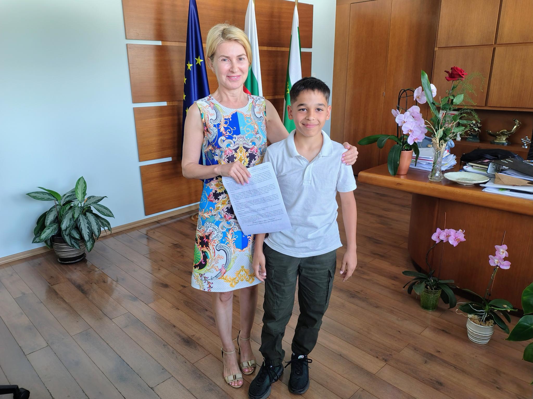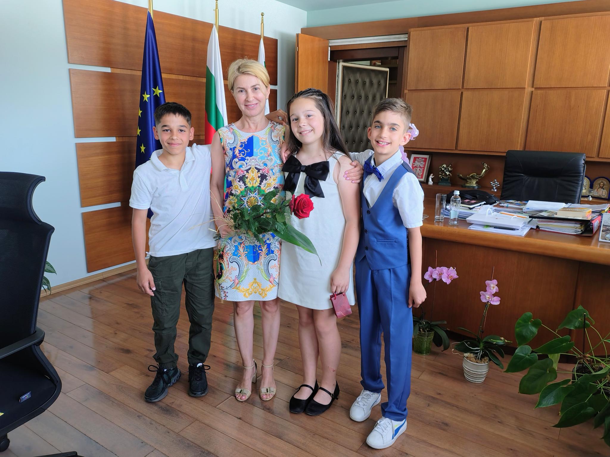 Тримата бяха част от оспорвана надпревара в симулативната игра „Избор на кмет“, която се проведе в училището като финален етап от иновационните лагери за деца, организирани в града по програма за обучение в предприемачество за най-малките - „Бъдещото съм аз“.