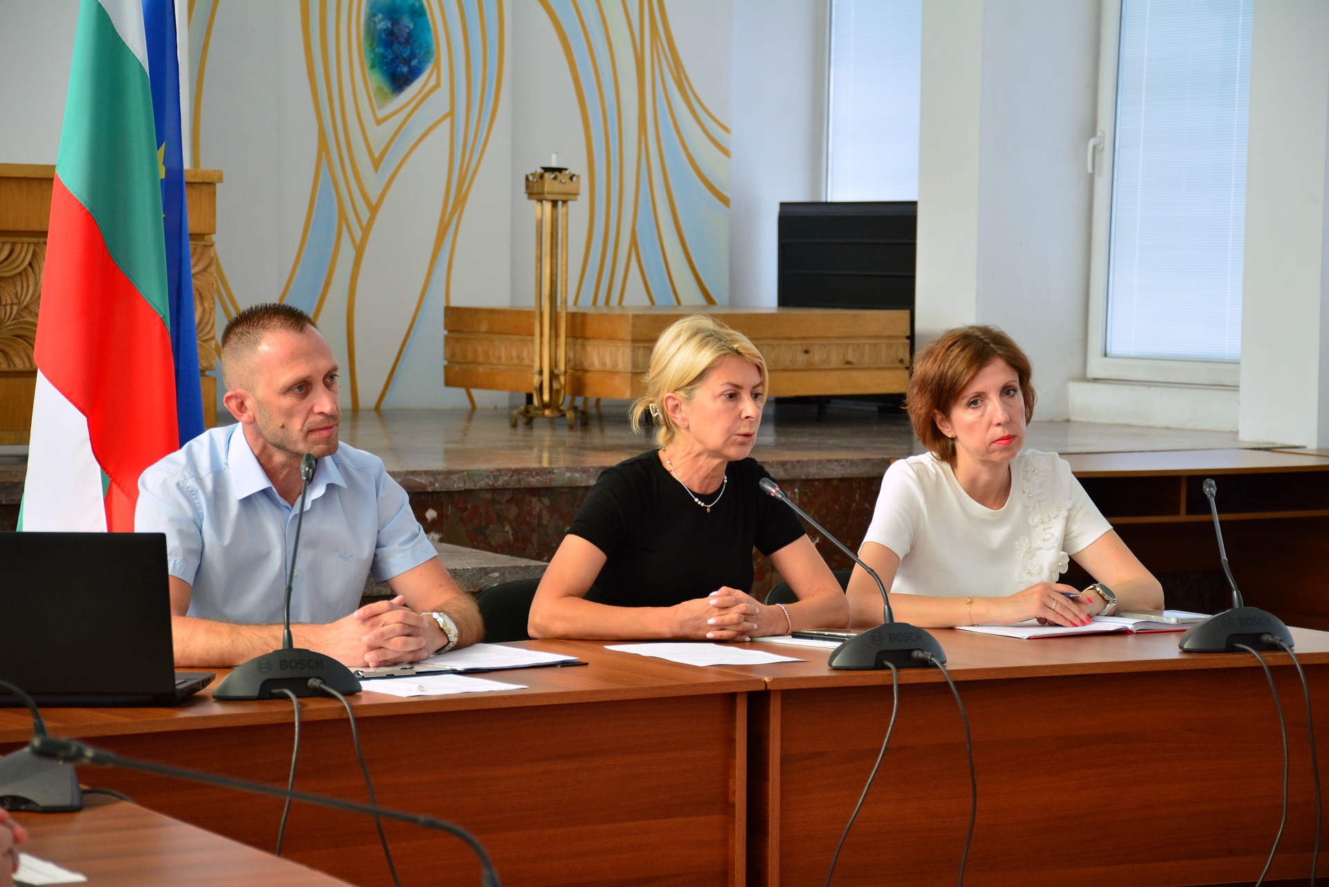 От ляво надясно: Секретарят на Общинския съвет за намаляване на риска от бедствия Тихомир Трифонов, кметът на Габрово Таня Христова и секретарят на Общината Полина Тихова © Община Габрово