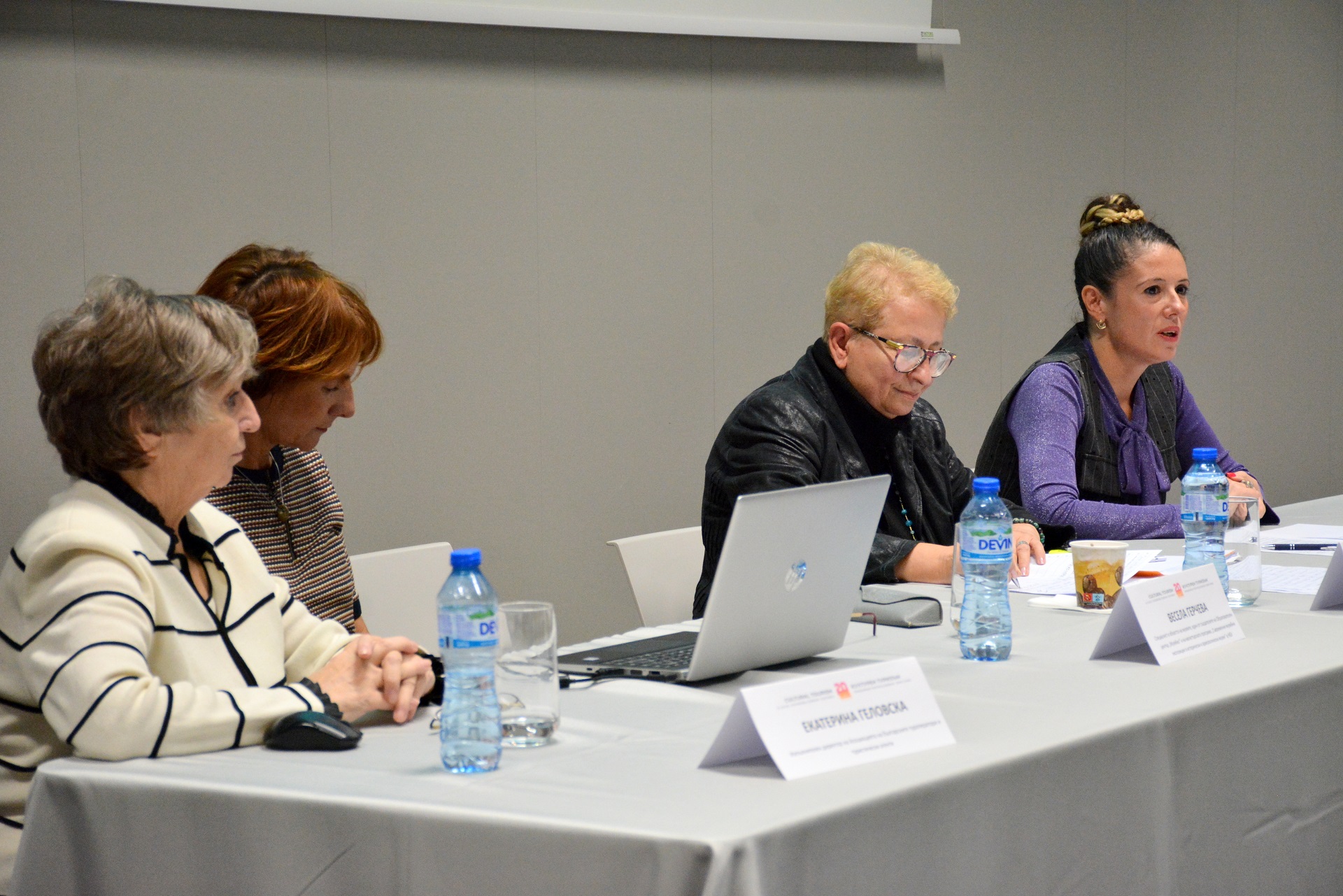 От ляво надясно: Изпълнителният директор на АБТТА Екатерина Геловска, съоснователят на „Музейко“ Весела Герчева, модераторът на семинара доц. д-р Соня Алексиева и председателят на КС на АСКО Миглена Въгленова