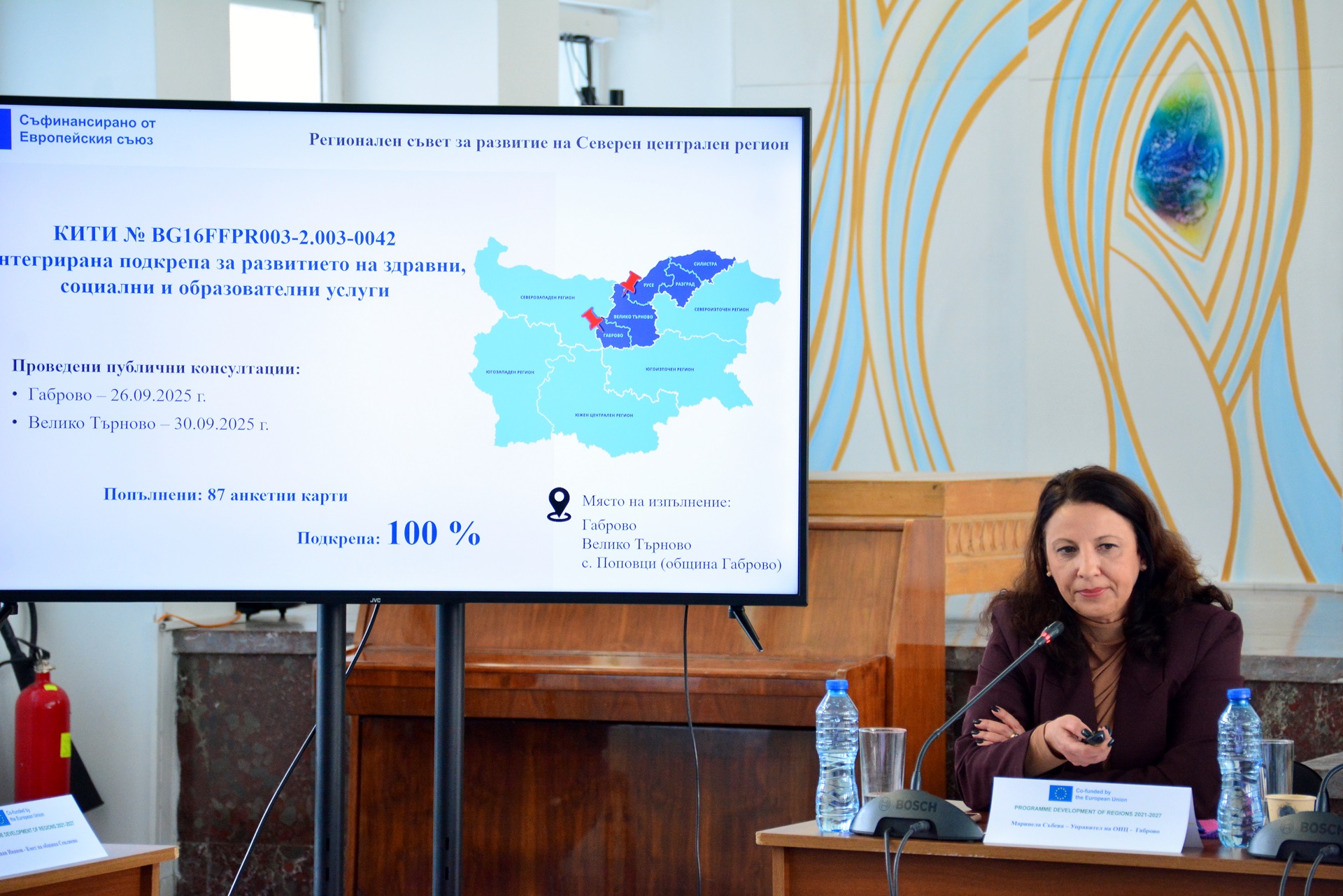 Управителят на Областния информационен център в Габрово Маринела Събева представи обобщени резултати от публичните консултации по подадените концепции за интегрирани териториални инвестиции. Общо попълнени са над 800 анкетни карти в 15 населени места от региона, които показват изключително висока степен на подкрепа – между 99,5% и 100%. На заседанието беше отбелязано, че всички концепции попадат в рамките на разполагаемия финансов ресурс и могат да продължат към следващия етап, в който одобрените кандидати ще бъдат поканени да изготвят детайлни проектни предложения.