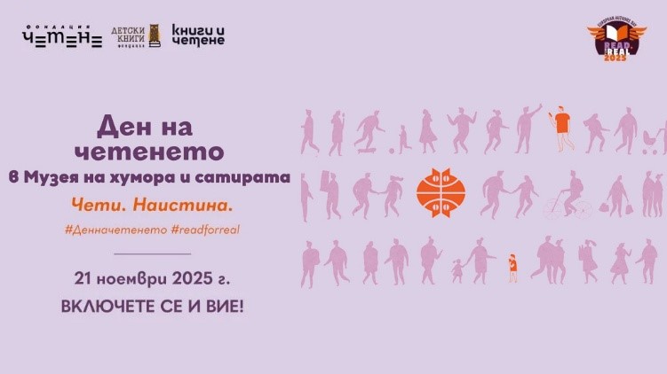 Домът на хумора и сатирата ще се включи за първи път в националната инициатива „Ден на четенето“, като предложи на своите гости забавно издание от музейната библиотека. В петъчния ден – 21 ноември 2025 г., всеки посетител ще бъде поканен да сподели радостта от четенето с шеговити и хумористични текстове.