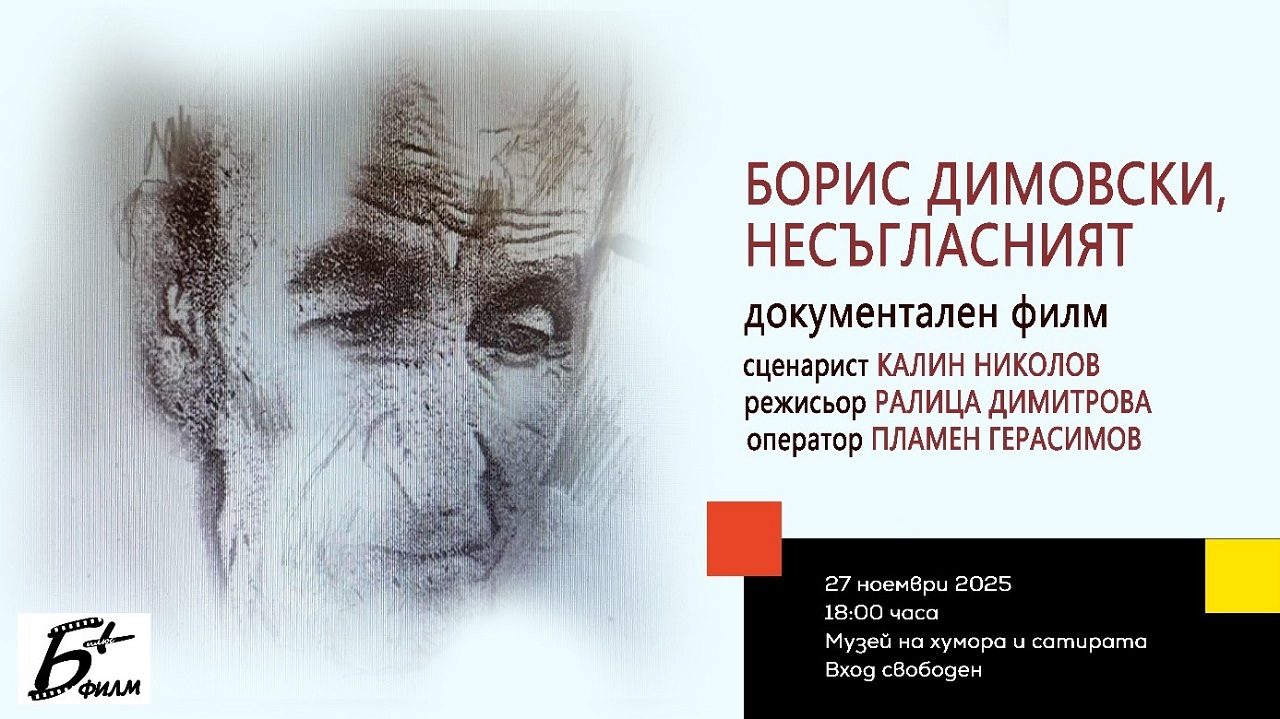 В четвъртък, 27 ноември 2025 г., от 18:00 часа в Дома на хумора и сатирата ще бъде излъчена филмова премиера, посветена на големия майстор Борис Димовски. Карикатуристът оставя диря още приживе заради своя неповторим начин да изразява гражданската и творческата си позиция. Прожекцията е съпътстваща проява към изложбата „Борис Димовски – 100 години от рождението“.