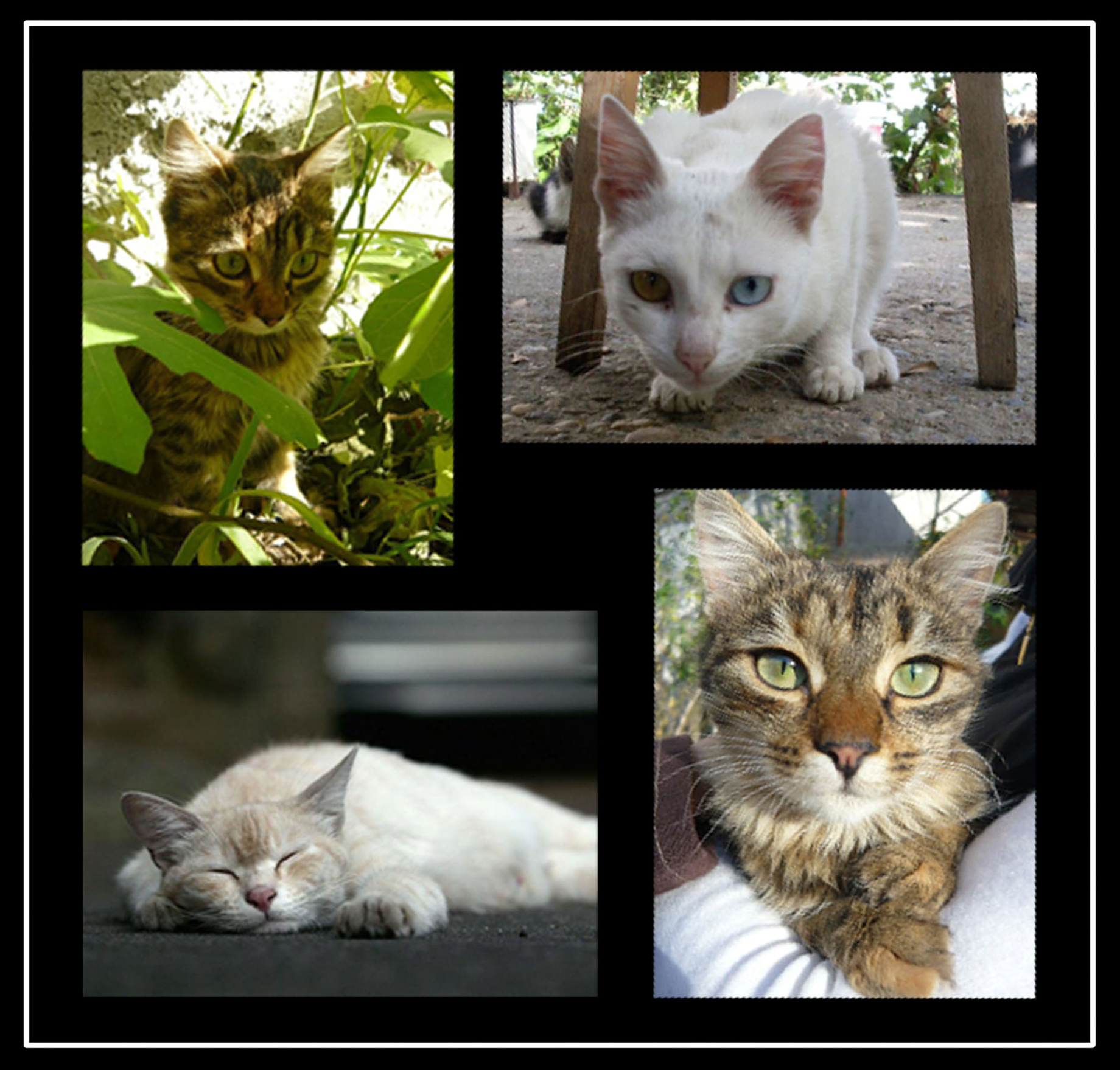 В изложбата „Котки” са включени 41 любителски фотографии. Сред тях могат да се открият снимки на маски-котки, статуетки-котки, дори и хора, дегизирани като котки. Обяснимо е, че повечето снимки са на чаровни домашни любимци, заснети в причудливи и смешни пози от техните стопани. Авторите са показали, че умеят да предсказват поведението на котката, да осъществят контакт с нея, да печелят доверието й и да уловят в обектива най-забавния момент. Снимките излъчват голяма симпатия и искрена любов към домашните любимци.