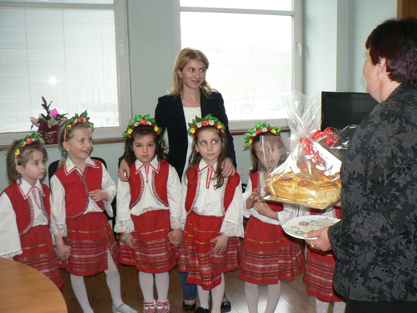 Малките лазарки от ОДЗ „Дъга” и децата от клуб „Веселушко” поздравиха днес габровския кмет Таня Христова за предстоящите Великденски празници. Те й поднесоха цветя, специално подготвена тематична програма от песни и стихотворения, ръчно изработени картички и великденска украса, и дори домашно приготвена пита.