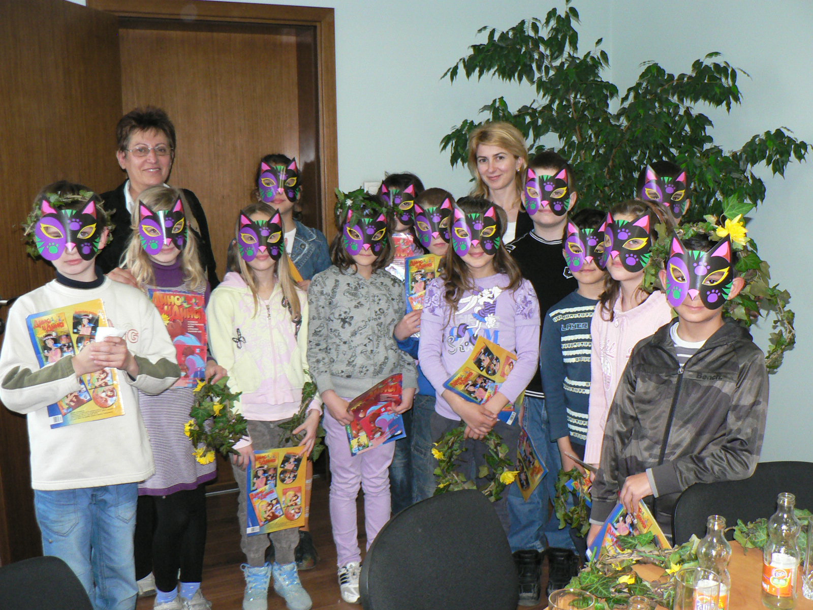 Всички малчугани напуснаха кметския кабинет с малък подарък, придружен с котешка маска, която да използват в предстоящия карнавал.