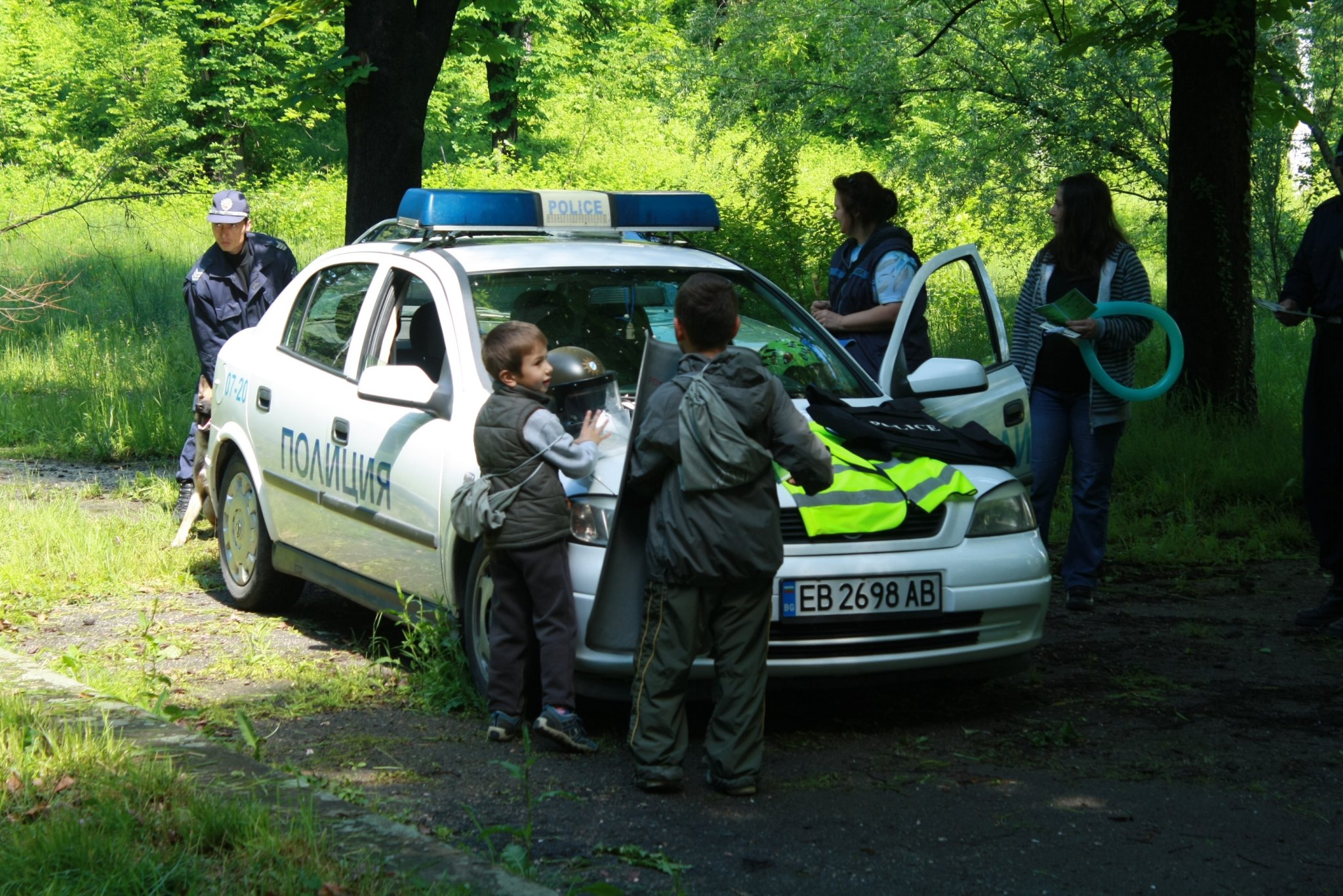 Районно управление „Полиция” демонстрираха техника – полицейски шлем, щит, палка, белезници, бронежилетка, автомобил и полицейско куче.