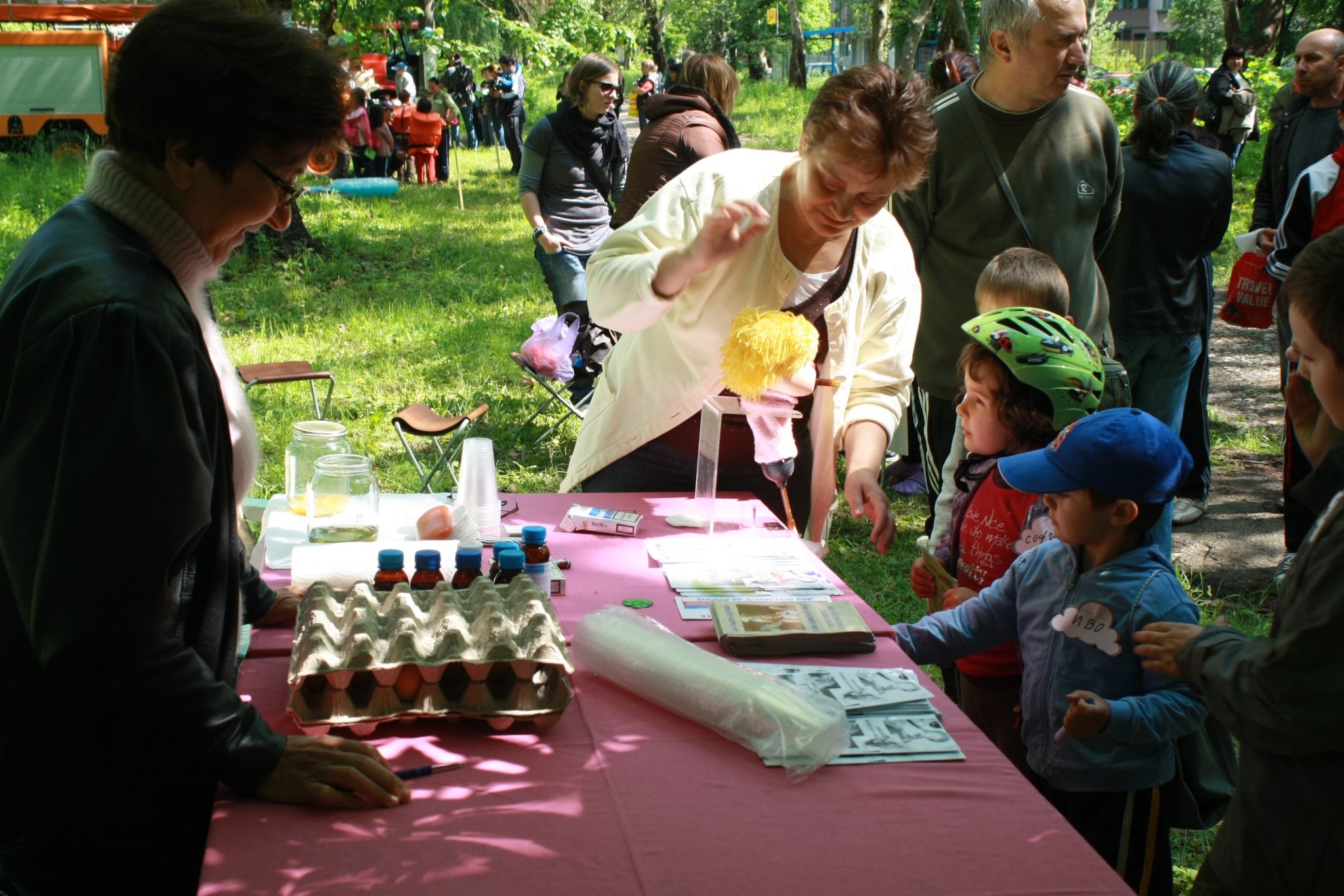 Мистър „Еколожко” разказа на децата какво е необходимо като ресурси, труд, горива, материали за получаване на един хляб и как трябва да ценят всичко това. Също така показа някой интересни изработки в домашни условия, на неща, които могат да се направят от пластмасови бутилки, автомобилни гуми, алуминиеви кутийки, пластмасови вилички и лъжички - хранилка за птички от бутилка, табуретка, легло, дори къша от бутилки. Голяма атракция беше и рисуване на лица от момичета от клуб „Изследовател” и доброволки, които се включиха заради големия интерес от децата.