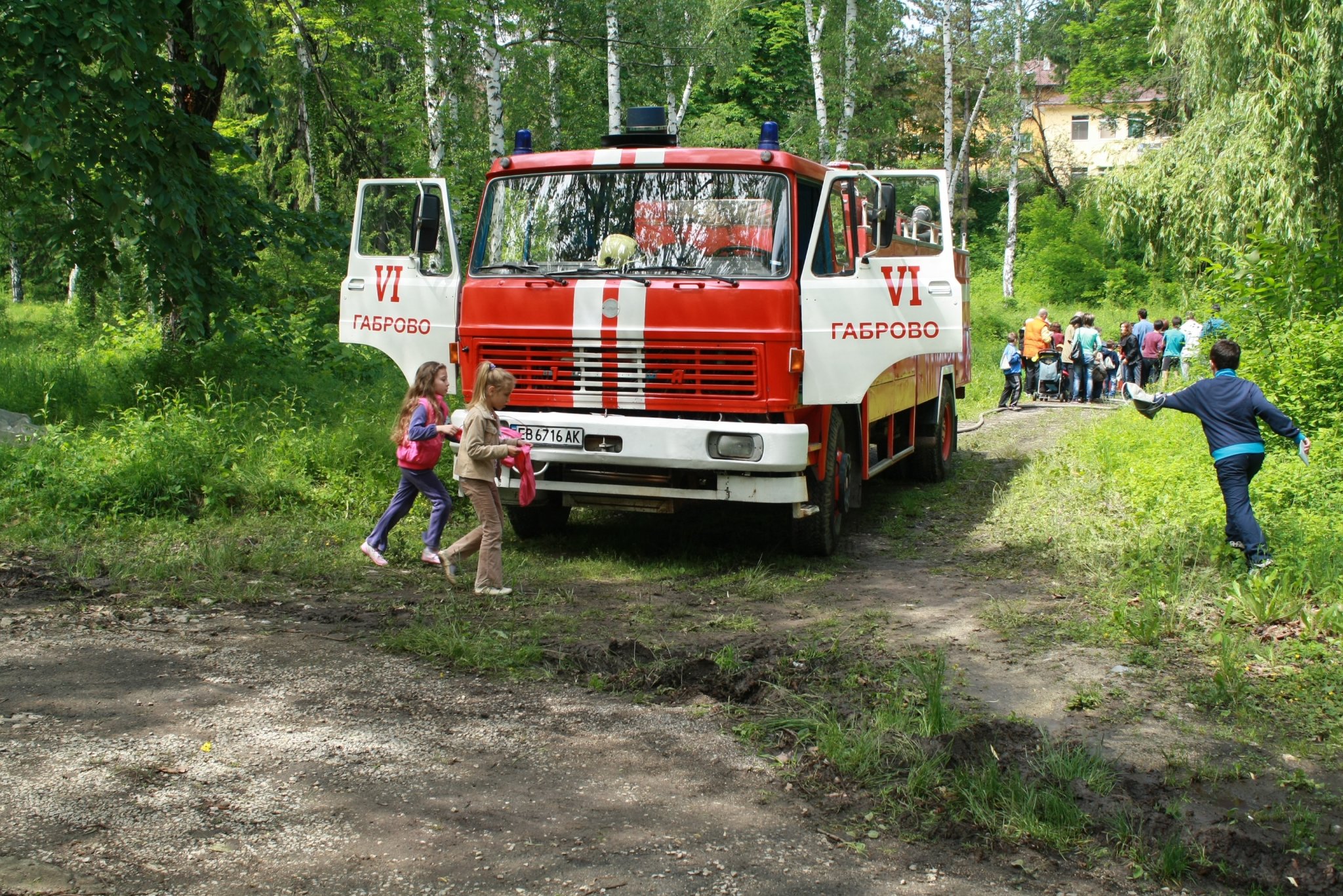 Пожарна безопасност и защита на населението – гасене на пожар с кофпомпа в цел и даване на брошури за това как да се предпазваме от пожари.