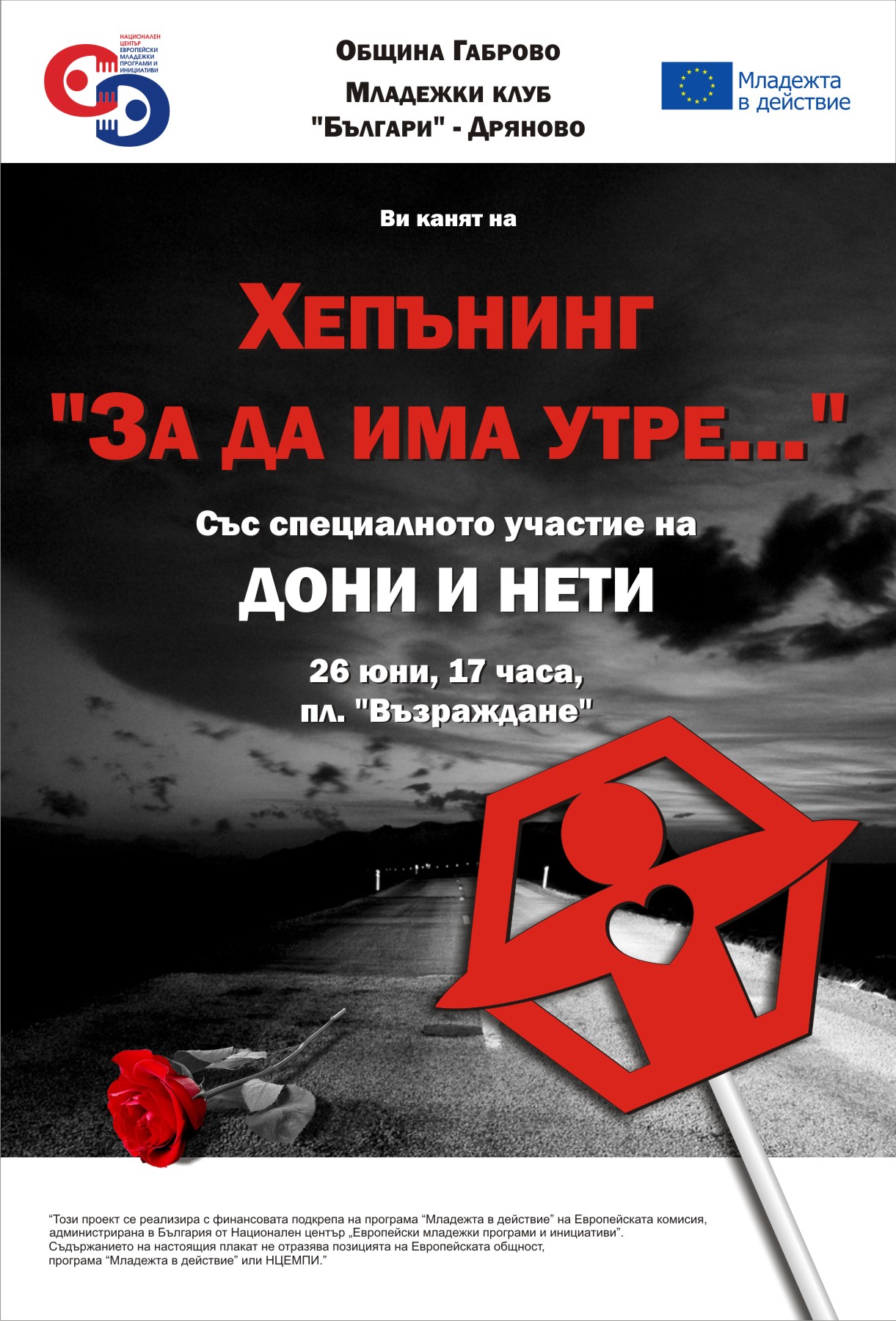 В хепънинга ще вземат участие младежки формации от Габрово, Дряново, Трявна и Севлиево, със специалното участие на ДОНИ И НЕТИ.