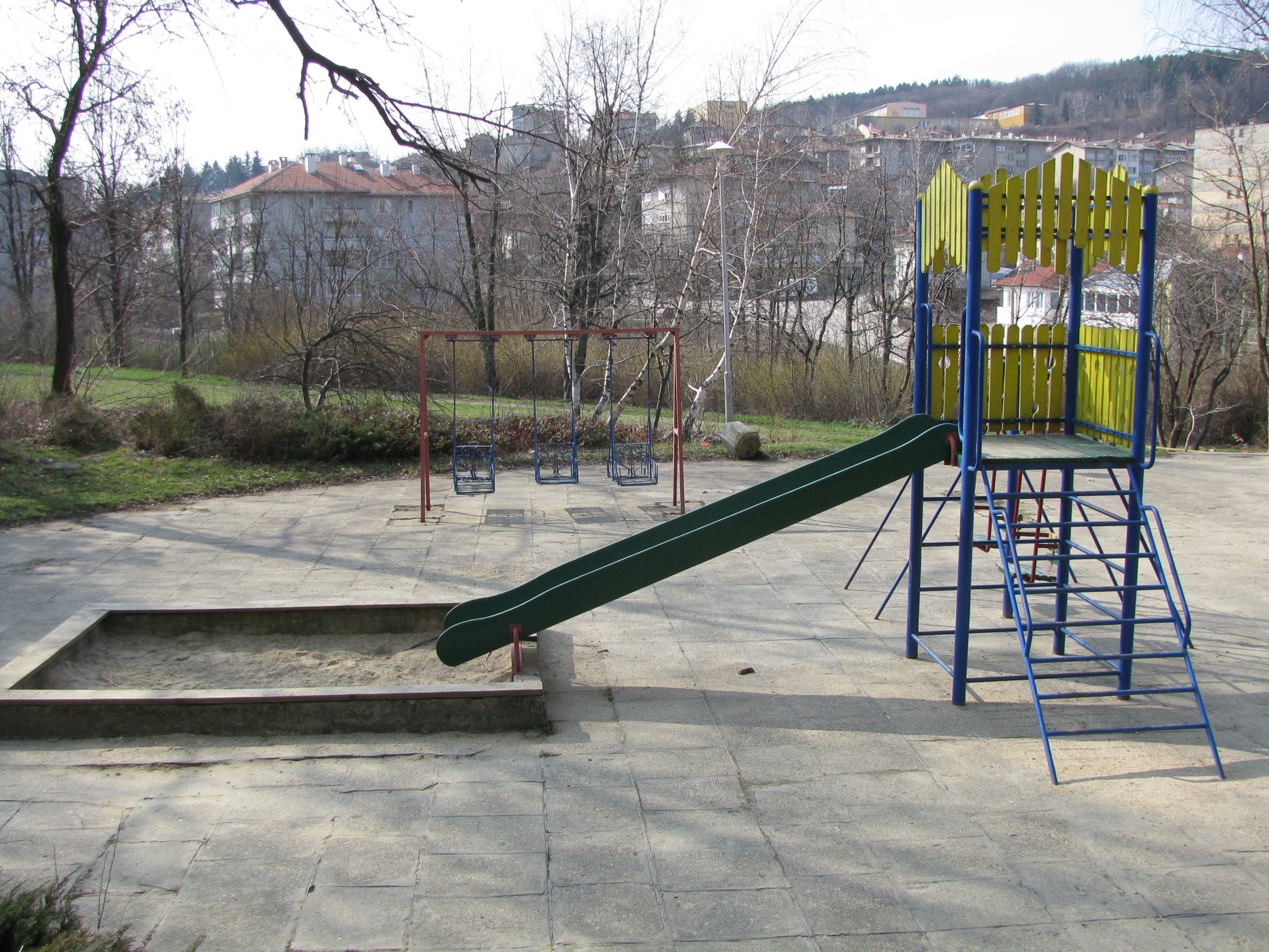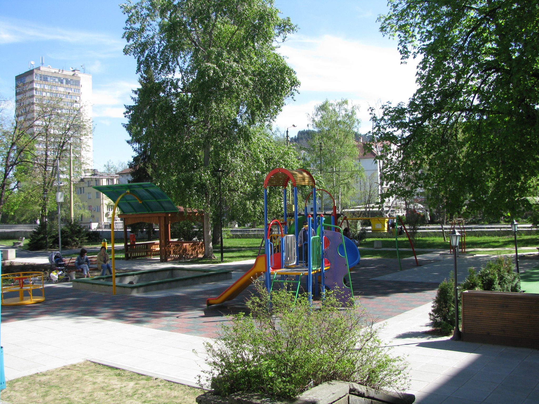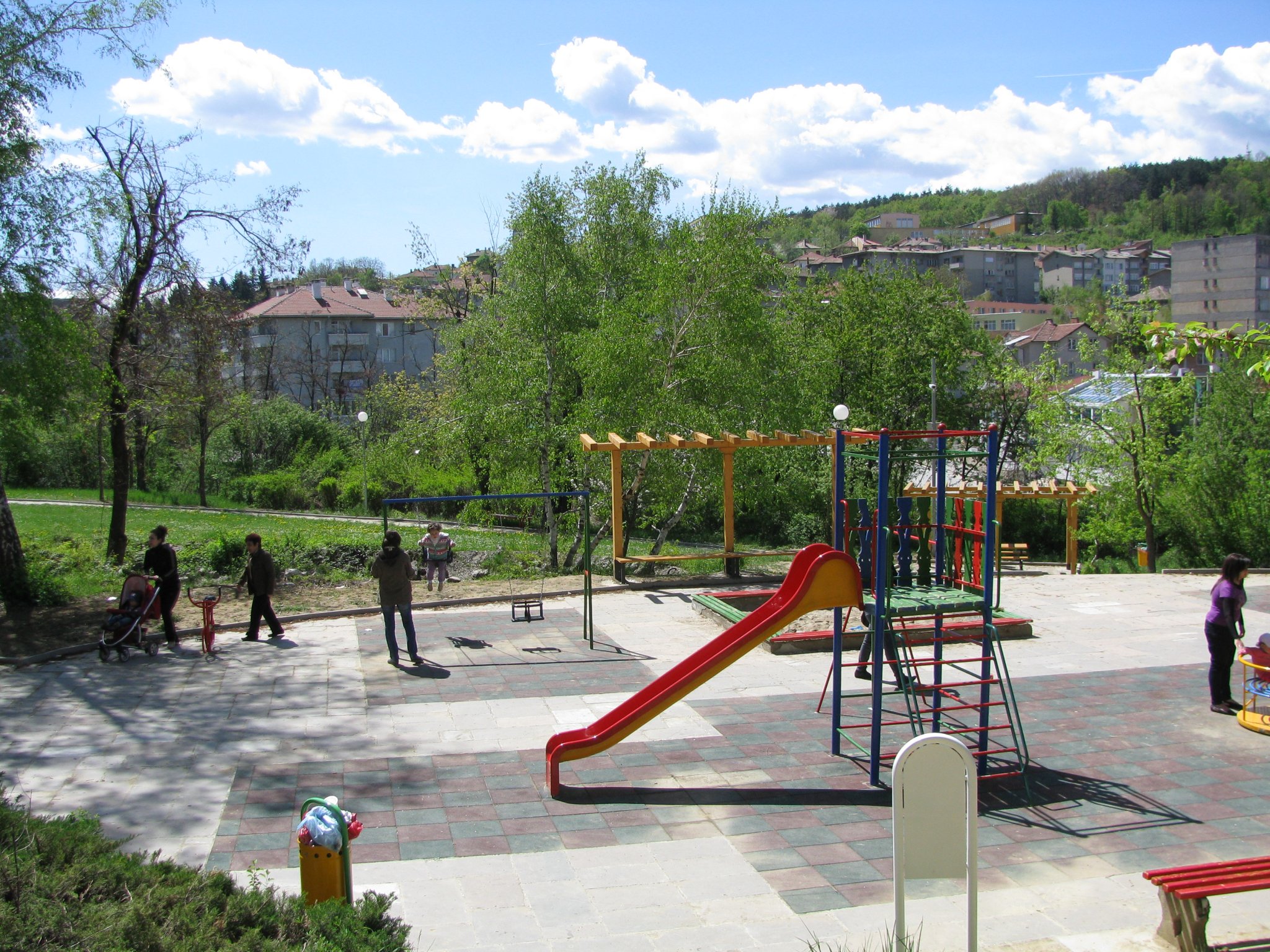 Ремонтът на детската площадка (423 м2) и довеждащи алеи обхваща доставка и монтаж на ново комплексно съоръжение за игра на деца, 4 броя люлки тип „махало”, като две от тях са тип „кош” за ползване от деца с увреждания; доставка и монтаж на фитнес-уред (кондиционер за крака и ръце) за превенция на обездвижени деца, на метална въртележка с вътрешни седалки. Извършен е ремонт на пясъчника и е осигурено засенчване. Монтирани са пейки, беседка, кошчета за отпадъци и информационна табела, поставена е 145 м2 ударопоглъщаща настилка под съоръженията за игра. Положена е 305м2 настилка с плочи.