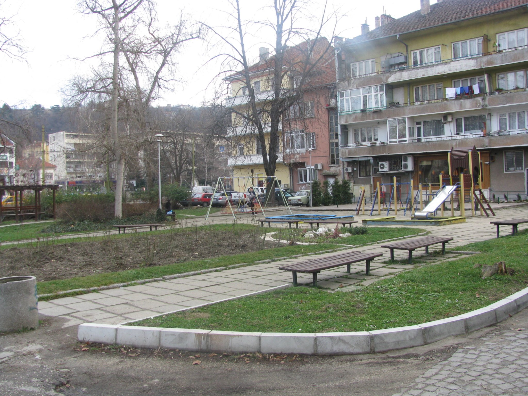 - зона за мултифункционално ползване - предвижда се да се ползва от деца над 12 години с по-разностранни интереси. Настилката е от цветни декоративни плочи, като в средата е отделено „шахматно поле” с големина 103м2 за игра на шах на открито. Монтирани са пейки, от които може наблюдава играта. Извършено е затревяване и засаждане на храстова и дървесна растителност..jpg)