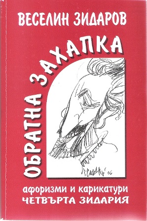 В.Зидаров е определил четвъртата си книга „Обратна захапка” като роман в афоризми и карикатури. За какво се разказва в него? Мотото на книжката ни дава донякъде отговор: „Животът е като афоризъм – кратък и понякога неразбран”. Да, в романа в афоризми става дума за нещата от живота, най-общо казано, онези, които ни се случват заради или въпреки партии, политици, вяра, духовност, любов, увлечения, личностни взаимоотношения. Сентенциите са подредени в 17 глави и надхвърлят солидната цифра 1100. Всяка глава е с отделно название, често – това е каламбур или кратък афоризъм („Сто години срамота”, „Алкохолизми”, „Темидиада”, „Ироними”, „Миниавантюри”). Ето няколко: „Ние сме техническа нация! Разбираме само от машинации”; „За партийното строителство не са нужни зидаро-мазачи, а подмазвачи”; „Уж живеем в република, а се държим като послушна публика”; „По цените се разбира у нас колко се цени човешкият живот”; „У всеки има зрънце завист, но у някои е цял хамбар”;” Калкан: риба, която си е платила плоския данък”; „Пази се от джудже със самочувствие на великан”; „На гладен стомах се пише сатира, на пълен – партийна програма.” „Веселият четвъртък” ще предложи и още от „Обратна захапка” в изпълнение на актьора Светослав Славчев.