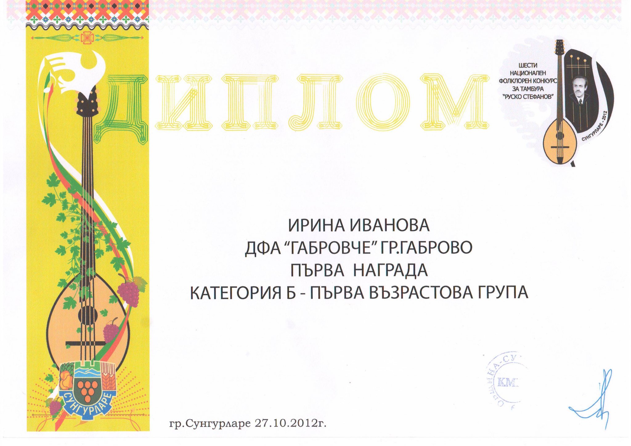 С две награди се прибраха децата на ДФА"Габровче" от VІ Национален конкурс за тамбура „Руско Стефанов”, който се проведе на 27 октомври в град Сунгурларе. Компетентно жури оценява участниците, разделени в четири възрастови групи.