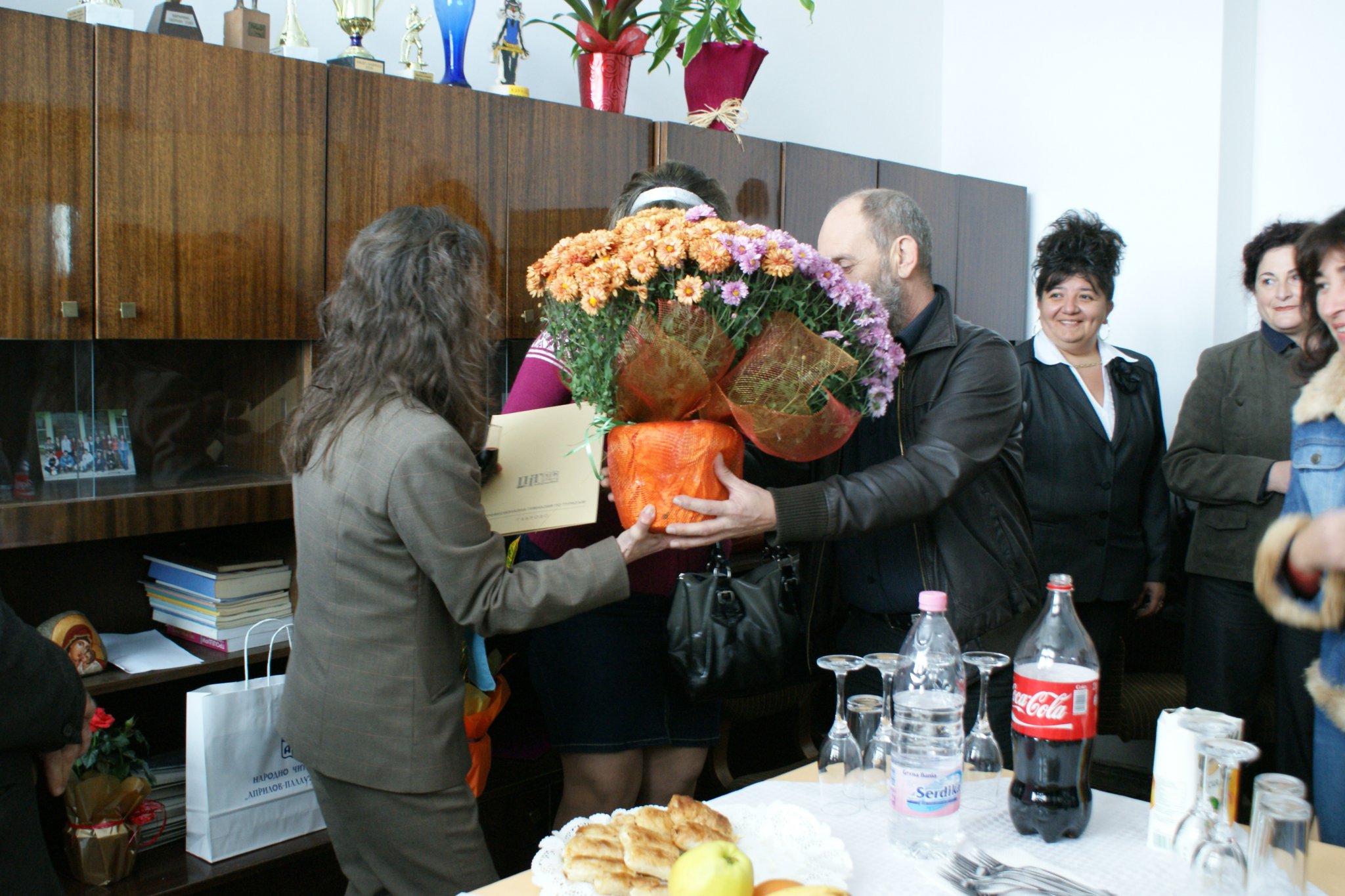 Своите поздравления поднесоха заместник-кметът на Община Габрово г-жа Нела Рачевиц, началникът на Регионален инспекторат по образование г-н Георги Маринов, директорът на дирекция „Образование и социални дейности” г-жа Даниела Василева, просветни дейци, бивши възпитаници и приятели.