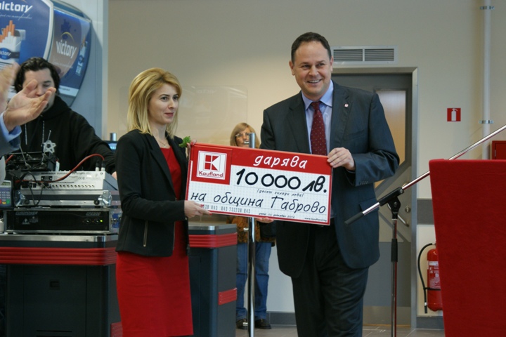 По повод стъпването на веригата в Габрово, ръководството й направи дарение от 10 000 лева за изграждане на детски съоръжения в града. Символичният чек бе връчен на кмета Таня Христова от председателя на управителния съвет на „Кауфланд България” Димитър Спасов по време на официалното откриване. Това не е първото дарение от страна на търговската верига за нови придобивки в страната. „Кауфланд” е социално отговорна компания, за която приоритет са множество проекти, свързани с обществено полезни дейности, инфраструктура, опазване на околната среда, отговорна политика по отношение на устойчивото бизнес развитие.