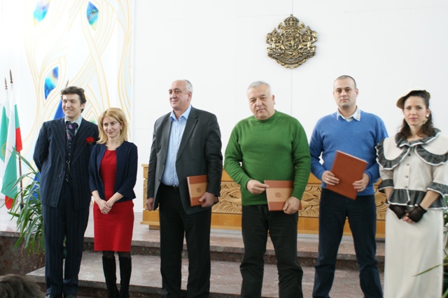 Акцент в духа на церемонията по подписване на договорите, беше млада двойка, облечена в градско облекло от началото на ХХ век. Символичните домакини псрещаха гостите при входа на ритуалната зала, като даряваха усмивка и спомен за познати персонажи от миналото.