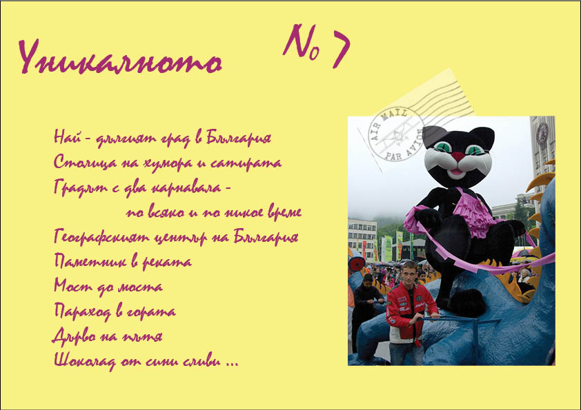 - В Габрово се чувствам у дома... дори и когато съм на гости. За мен и приятелите ми има достатъчно места за забавление, пазаруване и разходка. Изобилната природа отморява очите ми, а цветните градинки са пристан всеки път, когато почувствам умора в нозете си. Щом си почина, мога да погледам реката от крайречната алея. С пълното облагородяване на градски парк „Маркотея” ще мога да прекарам цялата неделя сред зеленина, само на пет минути от центъра.