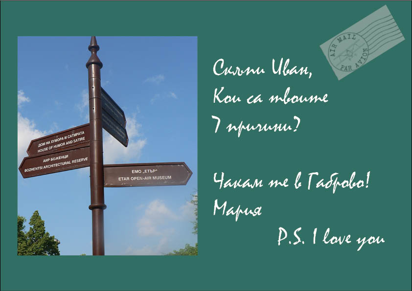 Мария изпрати 7 картички на Иван с пощенско клеймо Габрово: