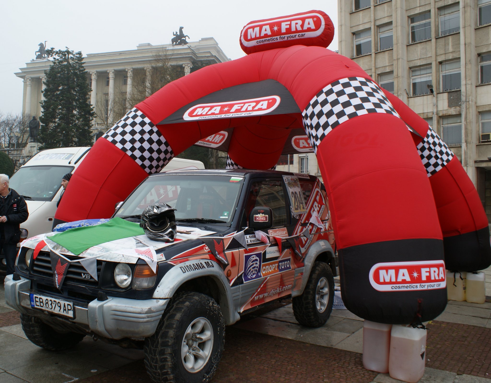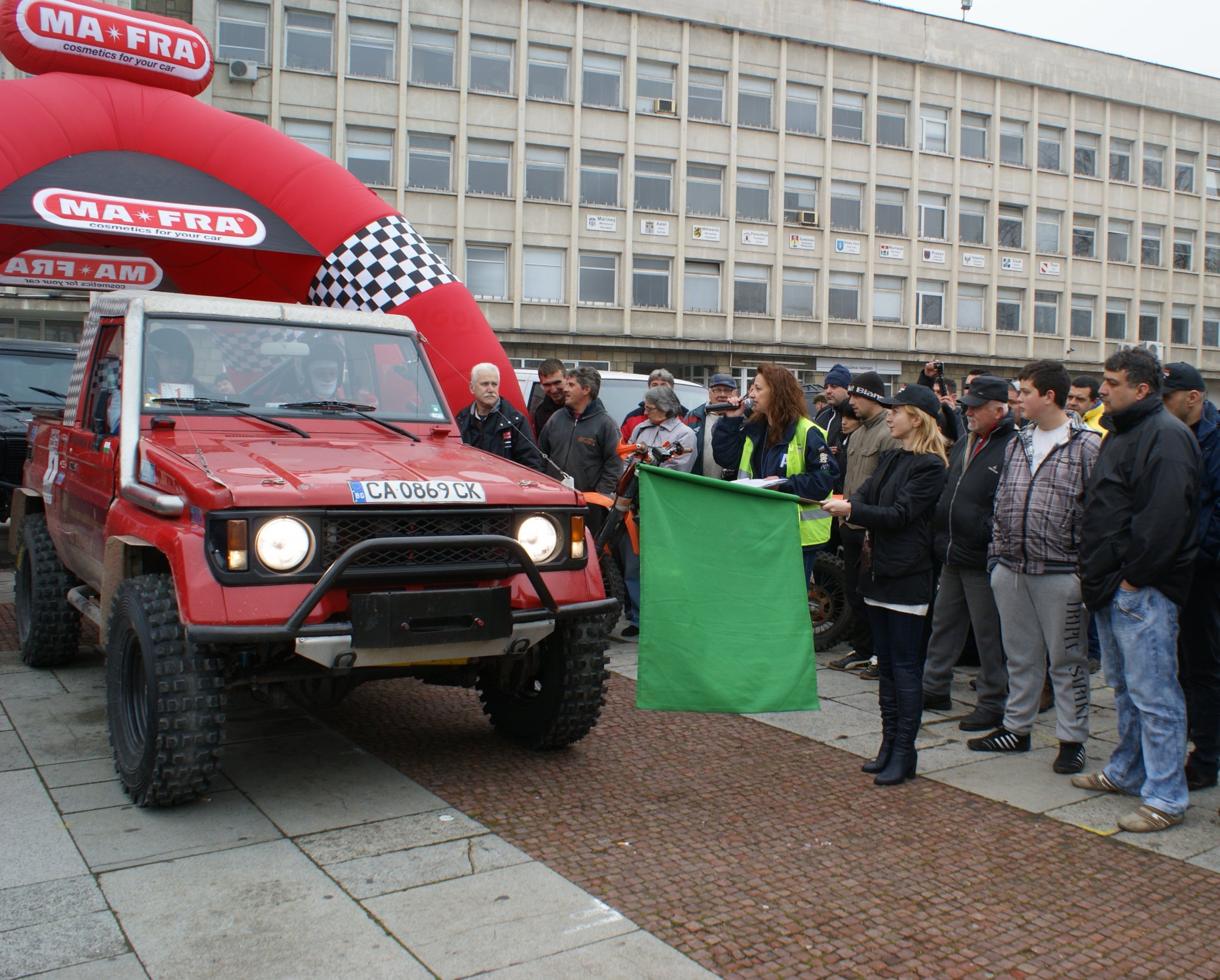 След приключване на задължителния технически преглед екипажите заеха места по автомобилите си, които бяха изпълнили площад "Възраждане". Звукът на тежък рок и миризмата на бензин придаваха допълнителна тръпка на състезателите, на които кмета Таня Христова пожела успех и влезе в ролята на стартер, като размаха флага пред първия автомобил, който се отправи към точката на официалния старт.