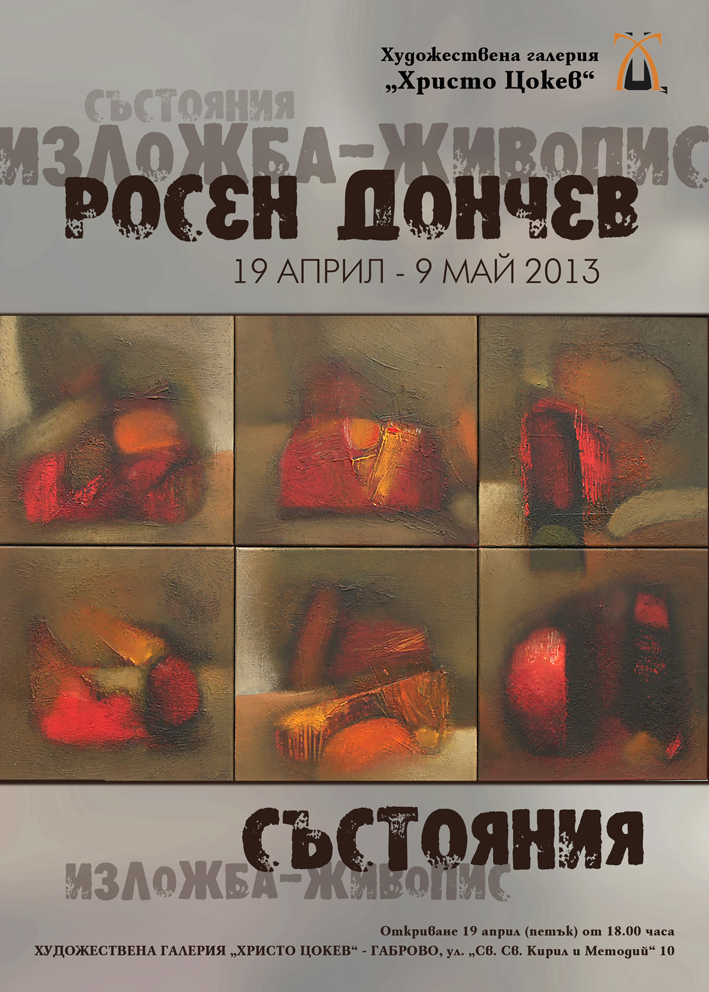 По случай 50-годишния юбилей на живописеца Росен Дончев, на 19 април 2013 г. – петък, от 18.00 часа ще се открие негова трета самостоятелна изложба „Състояния” в Художествената галерия „Христо Цокев” в Габрово.