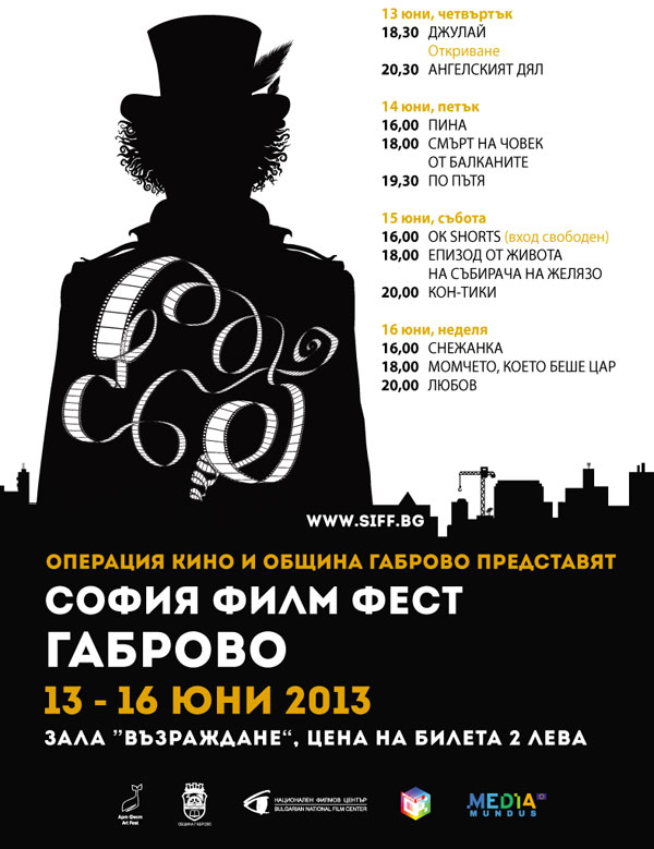Директорът на София Филм Фест - Стефан Китанов, лично ще открие четвъртото издание на фестивала. Това ще се случи на 13 юни (четвъртък) в 18.30 часа със специалната, примиера за града, прожекция на един от най-новите български игрални филми, включен в Конкурсната програма на 17-ия Международен филмов фестивал „София Филм Фест” през март – „Джулай”. Режисьорът на продукцията - Кирил Станков, ще представи филма пред габровската публика и ще очакват въпросите и впечатленията на зрителите.
