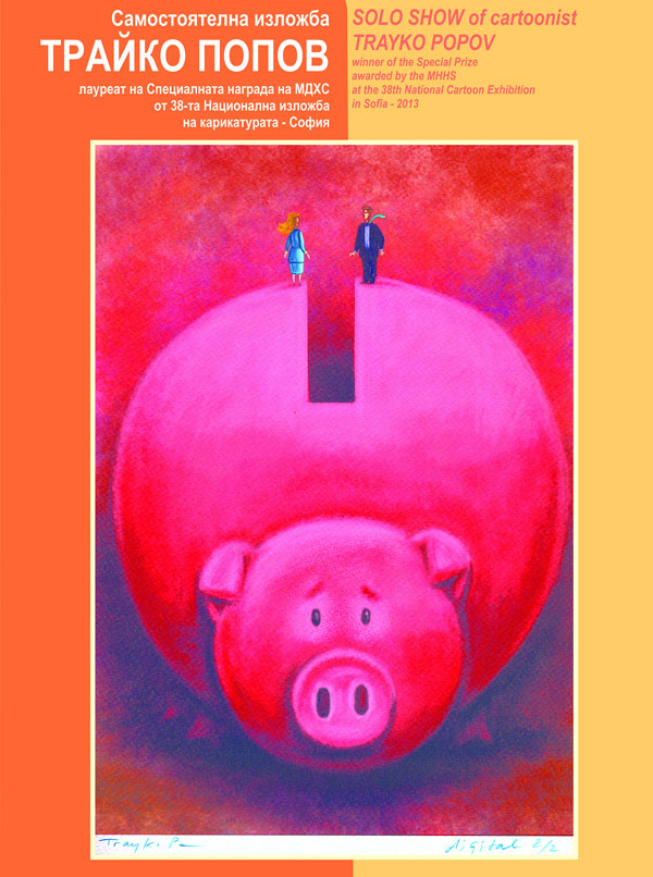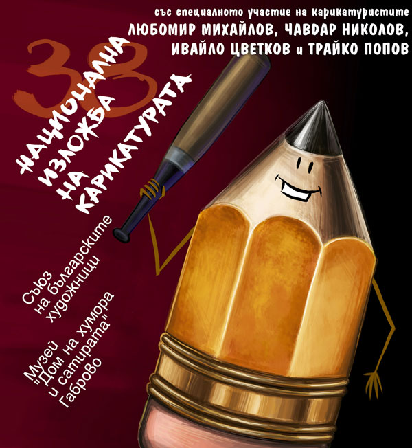 В диалог с руската карикатура ще „влезе“ тридесет и осмата Национална изложба на карикатурата, която по добра традиция от дълги години се представя и пред взискателната габровска публика. Ще припомним, че тя се организира от секция „Карикатура“ на Съюза на българските художници и има претенцията да показва най-високите постижения на съвременните български художници, работещи в областта на различните жанрове на карикатурата. Включени са 227 произведения на 29 автори, сред тях и на нашите земляци Георги Каралиев, Веселин Зидаров, Светлин Стефанов. В програмата на вечерта ще участват и няколко от хитовите съвременни карикатуристи: Любомир Михайлов – председател на секция „Карикатура“ при СБХ, Чавдар Николов – носител на Наградата на СБХ, Ивайло Цветков – председател на ФЕКО-България и Трайко Попов – лауреат на Специалната награда на Дома на хумора и сатирата от 38. Национална изложба на българската карикатура – София 2013, който по статут се представя със самостоятелна изложба и показва 42 свои творби. Националната изложба на карикатурата и самостоятелната изложба на Трайко Попов можем да видим в зала 5.