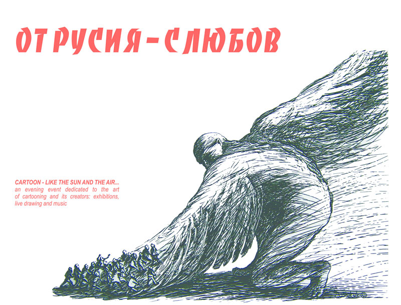 Вечерта, посветена на изкуството на карикатурата и на нейните създатели, ще Ви предложи и поздрави от Музикално студио „Талеви”, и рисуване на живо, и откровен разговор за нас и нашия ден. Каним Ви да се включите в празника, назован с приятелско намигване КАТО СЛЪНЦЕТО И ВЪЗДУХА!
