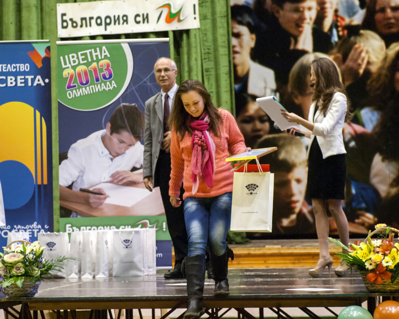 Победителите в „Цветна олимпиада“ от Габрово, Севлиево и Трявна бяха наградени на церемония в зала „Орловец“. Тридесет и пет ученика от Габрово бяха отличени за постиженията си в „шарената надпревара на знанията“. Най-сериозно бе съревнованието по български език и литература, в което учениците демонстрираха уменията си да пишат есе на тема „България си ти!“. Именно в тази категория награди получиха първите три места, като бяха дадени и поощрителни награди. В състезанието по останалите три учебни дисциплини английски, математика и информационни технологии подаръци получиха само заелите първо място.