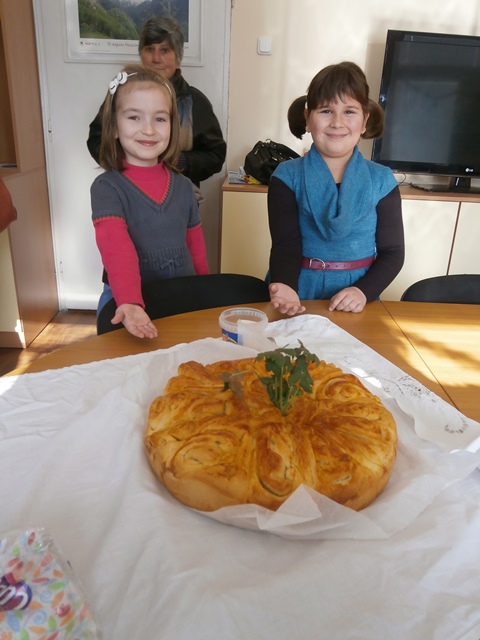 Децата влязоха в ролята на орисници и почерпиха по стара българска традиция с погача и мед посетители и служители в Общината. На всеки хапнал от погачата беше пожелано да дарява радост, доброта и обич през новата година.