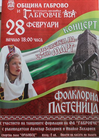 Община Габрово и Детски фолклорен ансамбъл „Габровче” канят всички на своя празничен концерт на 28-ми февруари, от 18 часа в Спортна зала „Орловец”.
