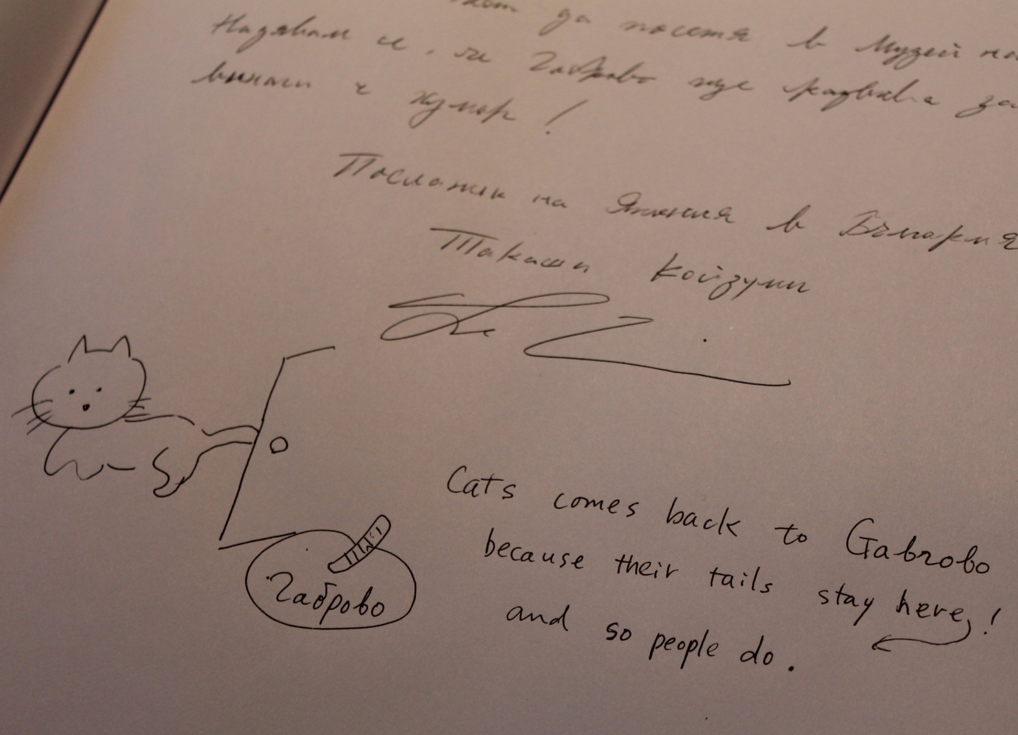 "Начинът, по който вие говорите за своя град и положителната енергия, с която заразявате е много симпатична и впечатляваща“, сподели посланикът на Япония, на чист български език по време на посещението си в Габрово. Негово Превъзходителство господин Такаши Коидзуми бе придружаван от съпругата си и аташето по културни въпроси към посолството госпожица Мивако Токумицу.
