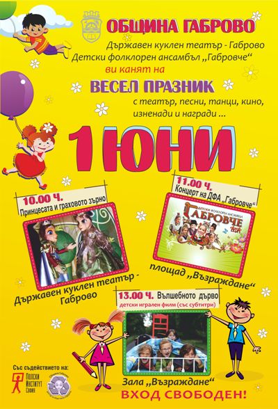 По повод Международния ден на детето - 1 юни, Община Габрово, Държавен куклен театър – Габрово и Детски фолклорен ансамбъл „Габровче” са подготвили празнична програма за малки и големи.