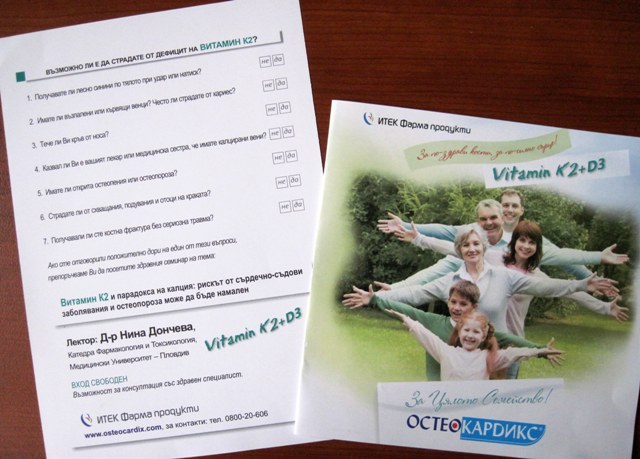 На 29 май 2014 г. от 17.30 часа в залата за събития и срещи на Регионална библиотека „Априлов – Палаузов“ ще се проведе здравен семинар на тема „Витамин К2 и и парадокса на калция: рискът от сърдечно – съдови заболявания и остеопороза може да бъде намален“. Реализирано и чрез Интернет, събитието ще даде възможност за задаване на въпроси и даване на отговори.