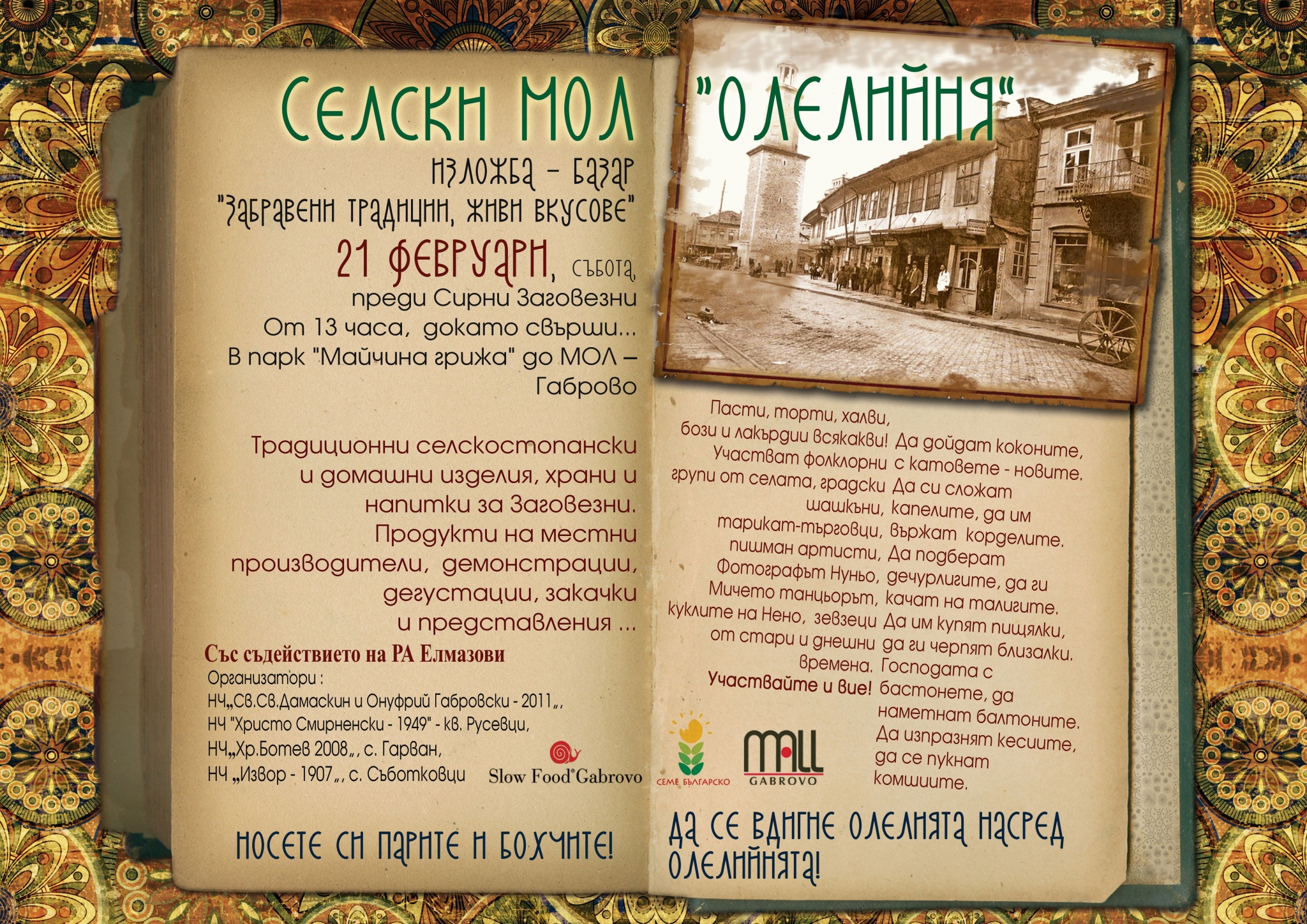 На Сирни Заговезни в Габрово ще се състои четвъртото издание на Базара „Забравени традиции, живи вкусове“. Селският мол ще ни върне пет-шест, че и повече десетилетия назад , когато седмица преди Великите пости, габровци гонили злото и зимата с шумна Олелийня, веселба и пъстър пазар.