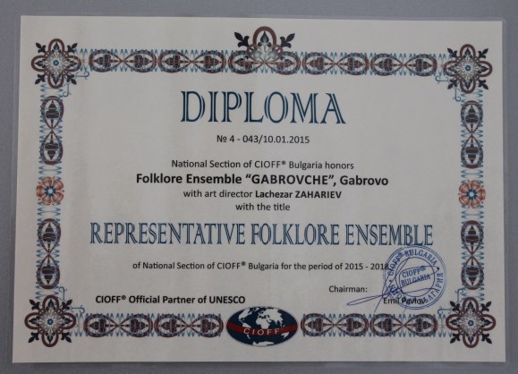 ДФА „Габровче“ спечели за четвърти път званието „Представителен фолклорен ансамбъл на ЦИОФФ България за периода 2015-2018 “. На специална церемония по време на ХV-та Национална среща на ЦИОФФ България, състояла се на 28 март тази година във Велико Търново, бяха връчени дипломите на представителните ансамбли и танцови колективи от цяла България.