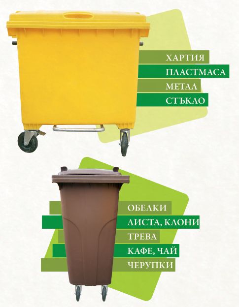 Новата система се състои от два контейнера – един за всички отпадъци, подлежащи на рециклиране (стъкло, пластмаса, хартия, метал, текстилни и кожени изделия и др.) с обем 1,1м3 и втори кафяв с обем 240л – за отпадъците от домакинството (обелки от плодове и зеленчуци, зелена маса от градините, хранителни отпадъци и др). Така отпадъкът от първия контейнер ще бъде отлична суровина за повторна преработка, а биоразградимите отпадъци от втория ще се превърнат в качествен почвен подобрител – компост.