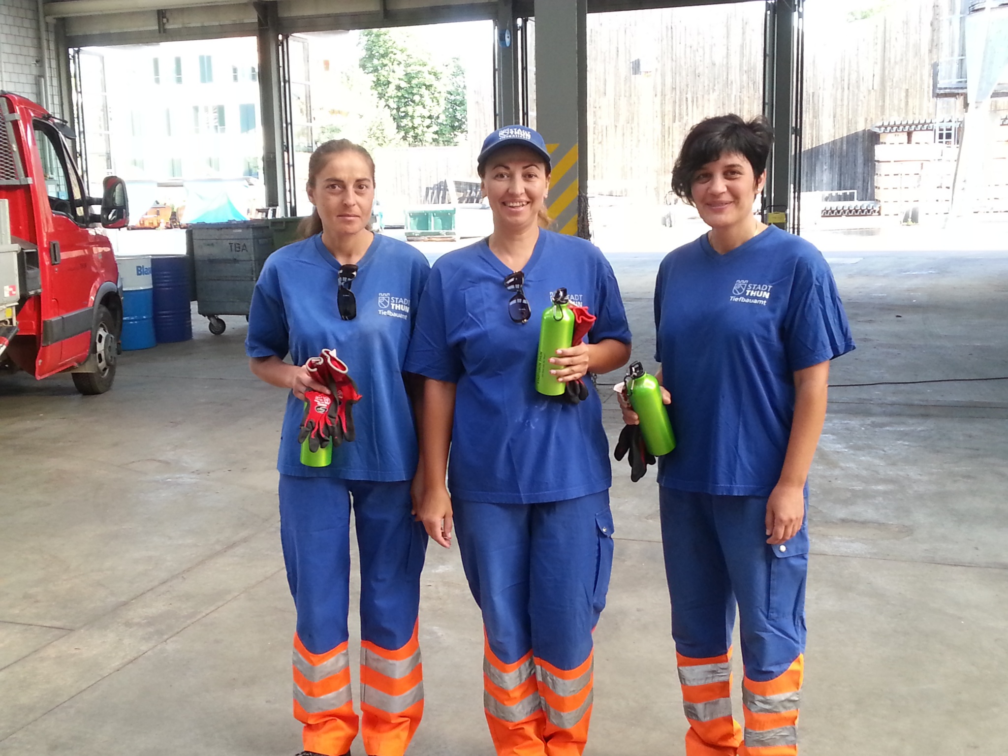 Днес, сряда, в Тун пристигнаха три градинарки от партньорския ни град от България. В следващите две седмици те ще се грижат за цветната украса заедно с работния персонал от общинското предприятие за озеленяване „Stadtgrün“. Други две групи ще преминат практическо обучение по грижи за дървета и поддръжка на съоръжения през месеците август и септември.