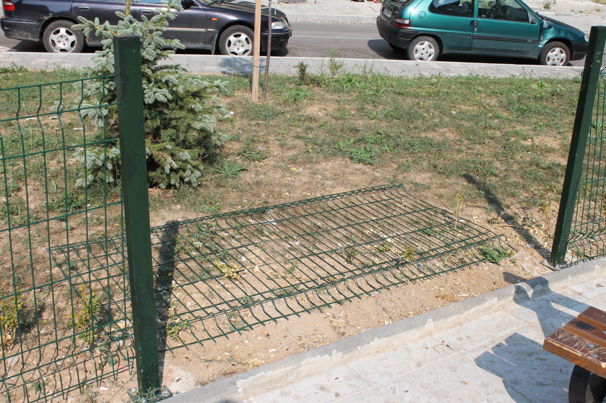 Нарушена е целостта на оградата, част от пейките, позиционирани на територията на площадката са изнесени извън нея и се намират в подход на частен имот. Освен, че са издраскани, пейките са и с липсващи елементи.