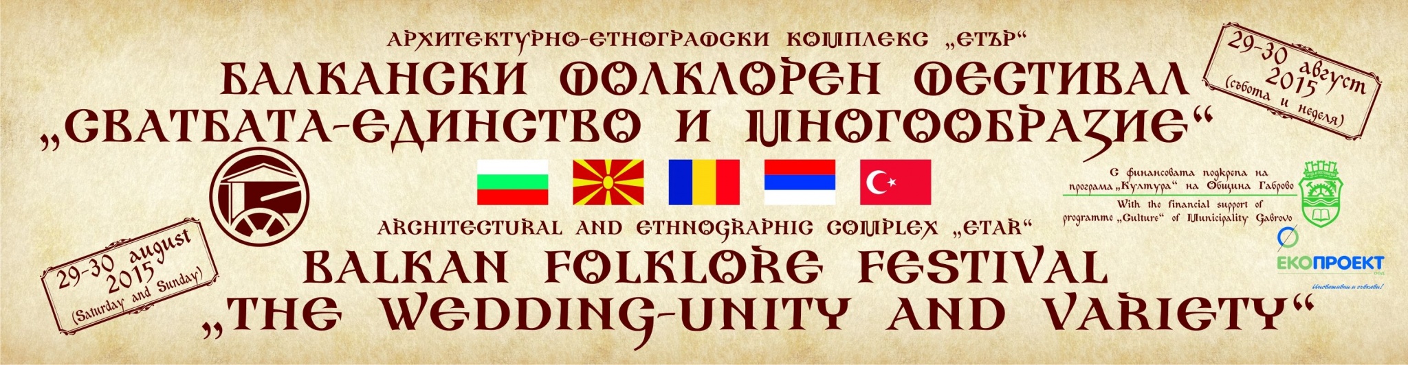 Балкански фолклорен фестивал „Сватбата – единство и многообразие” ще се проведе в АЕК „Етър” на 29 и 30 август 2015 г. Той ще ни запознае с традиционни обреди на македонци, сърби, турци и румънци; с фолклорното многообразие по българските земи, чрез сватбените обичаи на турлаци, хърцои, тракийци и шопи.