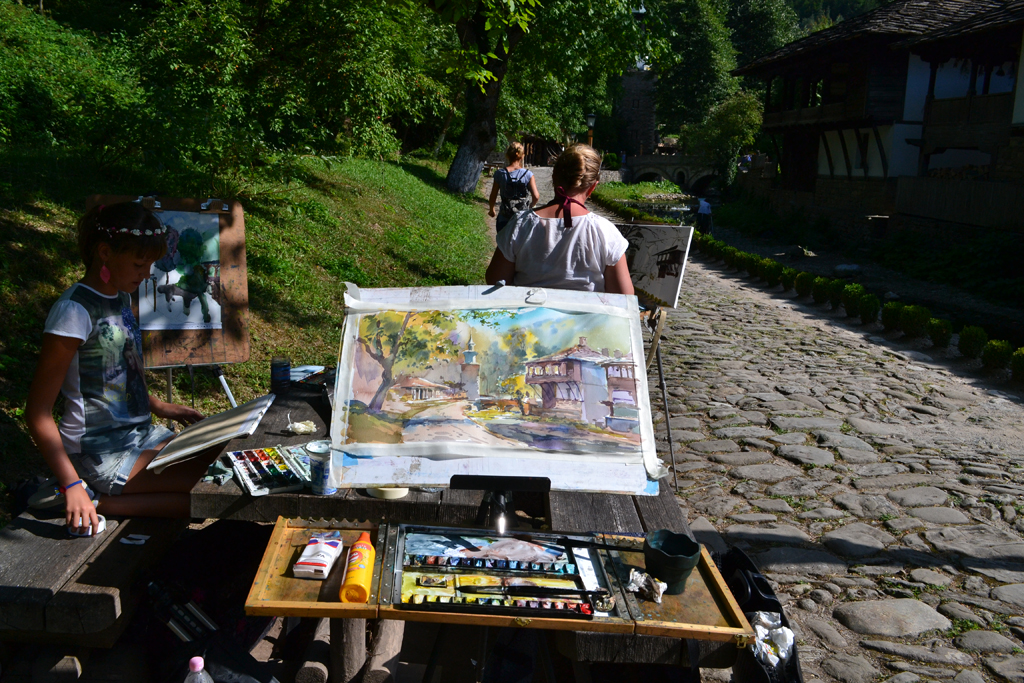 След като бяха запознати с историята на АЕК „Етър”, с богатството на архитектурните форми и занаятите, упражнявани днес в музея на открито, младите художници претвориха Възрожденската архитектура, водениците, струговете, задвижвани от силата на водата, занаятчийските работилници, каменните мостове в повече от 50 рисунки.