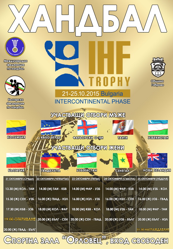 Днес България започва защита на титлата си от Интерконтиненталното издание на турнира на Международната федерация по хандбал IHF Trophy. Надпреварата е в спортна зала „Орловец“ и събира първенците в турнира при мъжете и жените от пет континента. Организатори на престижната проява са IHF, Българската федерация по хандбал и Община Габрово.