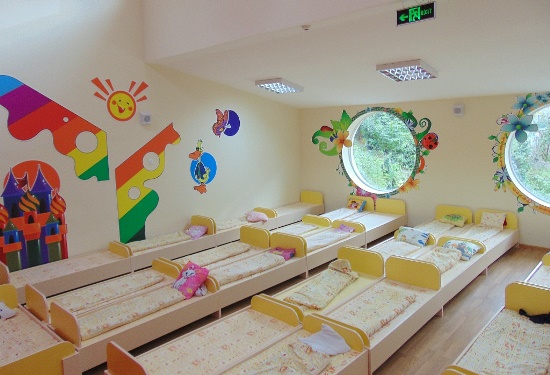 В двуетажния обект по стандарт „пасивна къща” са разположени три детски групи и многофункционална зала. Предвидени са сервизни и складови помещения, лекарски кабинет, платформа за достъп до второто ниво. В помещенията има подово лъчисто отопление, оразмерено при температурен режим 32-37С. Основният топлоизточник е термопомпен агрегат „въздух-вода”. Като допълваща и резервна мощност при много ниски зимни температури се включва абонатна станция на централното отопление. Поставен е комбиниран бойлер за подгряване към слънчева инсталация със селективни колектори. Всички външни и вътрешни стени са от решетъчна тухла 25 см и топлоизолация от външната страна 20 см EPS. Покривът е топлоизолиран с 30 см стъклена вата, а подът – с 18 см XPS под подовата стоманобетонова плоча и 2 см над плочата за екраниране на подовото отопление. Поставена е ПВЦ дограма с високи топлоизолационни параметри.