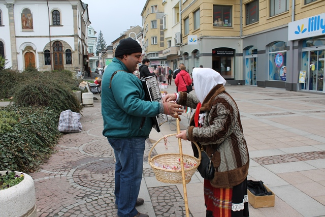 Баба Марта не подмина нито малките, нито големите, нито уличните музиканти, нито търговците на мартеници и също бе дарена – с музикален поздрав за добро настроение и мартеничка за късмет.