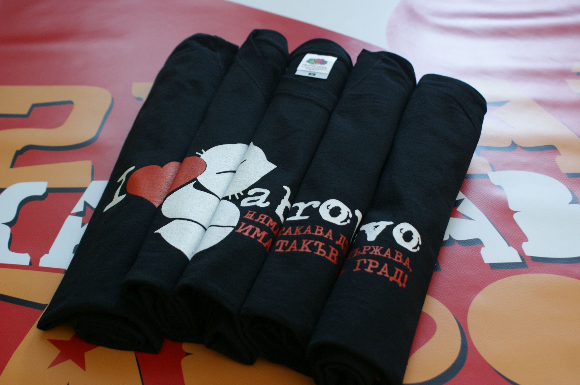 Междувременно хамалите приключиха разтоварването на кашоните с тениски с логото на Карнавал 2016 „Няма такава държава, има такъв град“ в Туристическия информационен център в Габрово. Тениските вече се продават, а цената им е 9 лв.