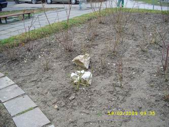 През изминалата нощ е напълно разрушен и алпинеумът зад библиотека „Априлов-Палаузов” /детската площадка зад бившата Стара поща/. Юката и останалите растения са изскубани, а камъните за разхвърляни наоколо.