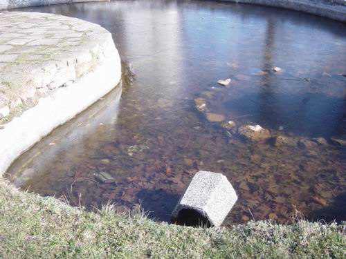 Бетоново кошче за отпадъци лежи отпреди около седмица в езерцето с лилиите в същата градинка, на която само преди месец изцяло беше разрушена хидроизолацията.