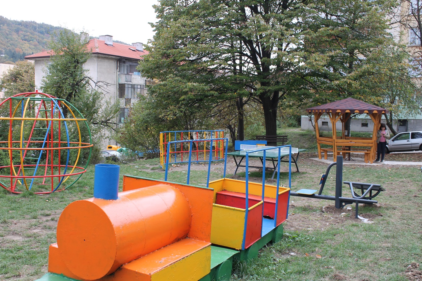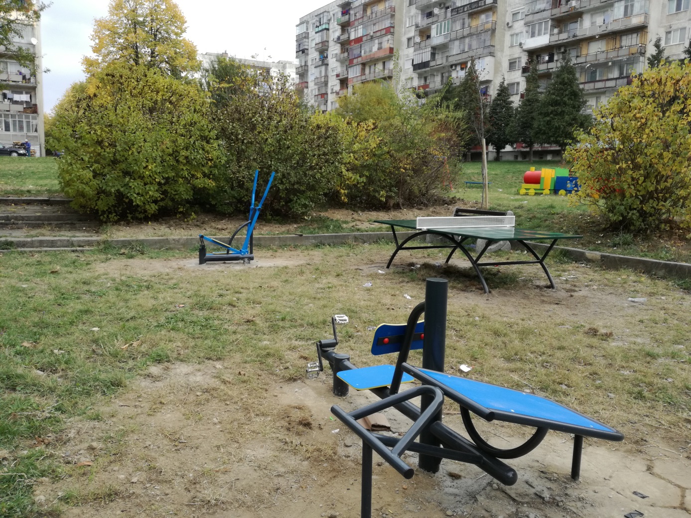 С проектът са изпълнени: Демонтаж на 2бр. съществуващи детски съоръжения и транспортирането им до общински склад Рязковци; Демонтаж на тротоарни плочи; Доставка и монтаж на тротоарни плочи; Доставка и монтаж на детска къщичка с допълнителна тераса и пъралка от 125см, стълба с парапет и наклонена стена за катерене; Доставка и монтаж на фитнес съоръжение - лост за набиране; Доставка и монтаж на фитнес съоръжение-кростренажор; Доставка и монтаж на фитнес съоръжение - велоергометър и лежанка; Доставка и монтаж на тенис маса; Доставка и монтаж на бетонови пейки с облегалка; Доставка и монтаж на бетонови кошчета за битови отпадъци;